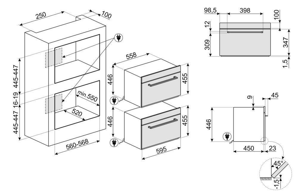 - Размеры для встраивания (ВхШхГ) 455x560x550 мм