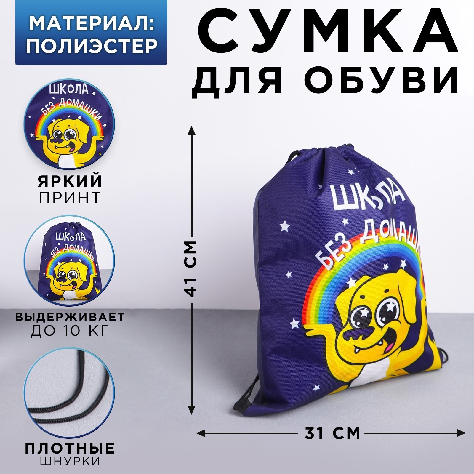 Сумка для обуви «Школа без домашки», полиэстер, размер 41х31 см 7065998