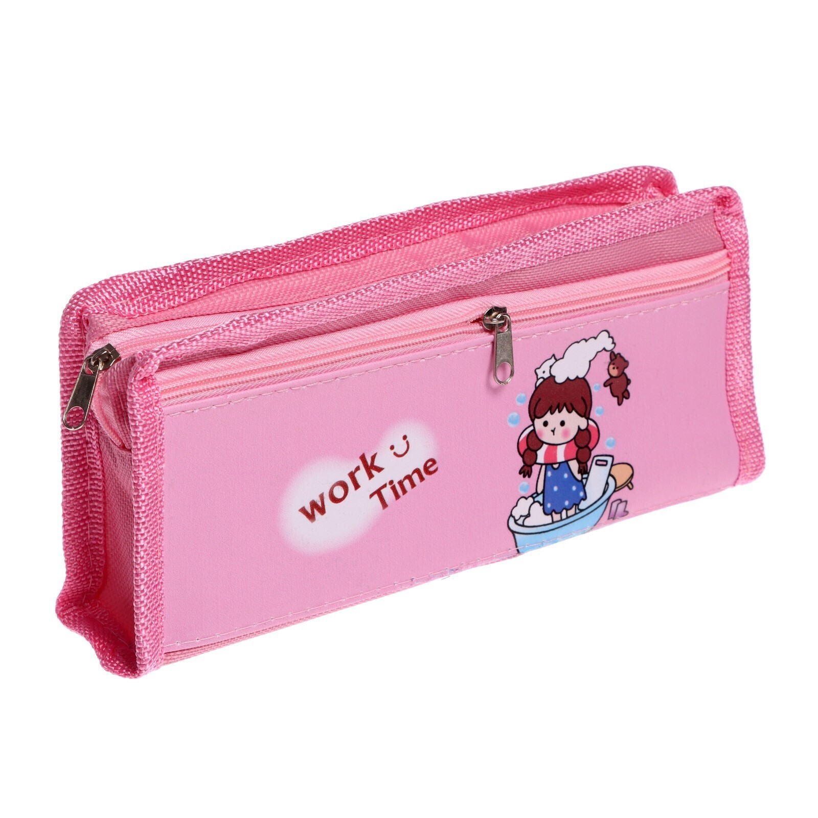 Пенал школьный "Work time" на молнии, 2 отделения, МИКС 7464233