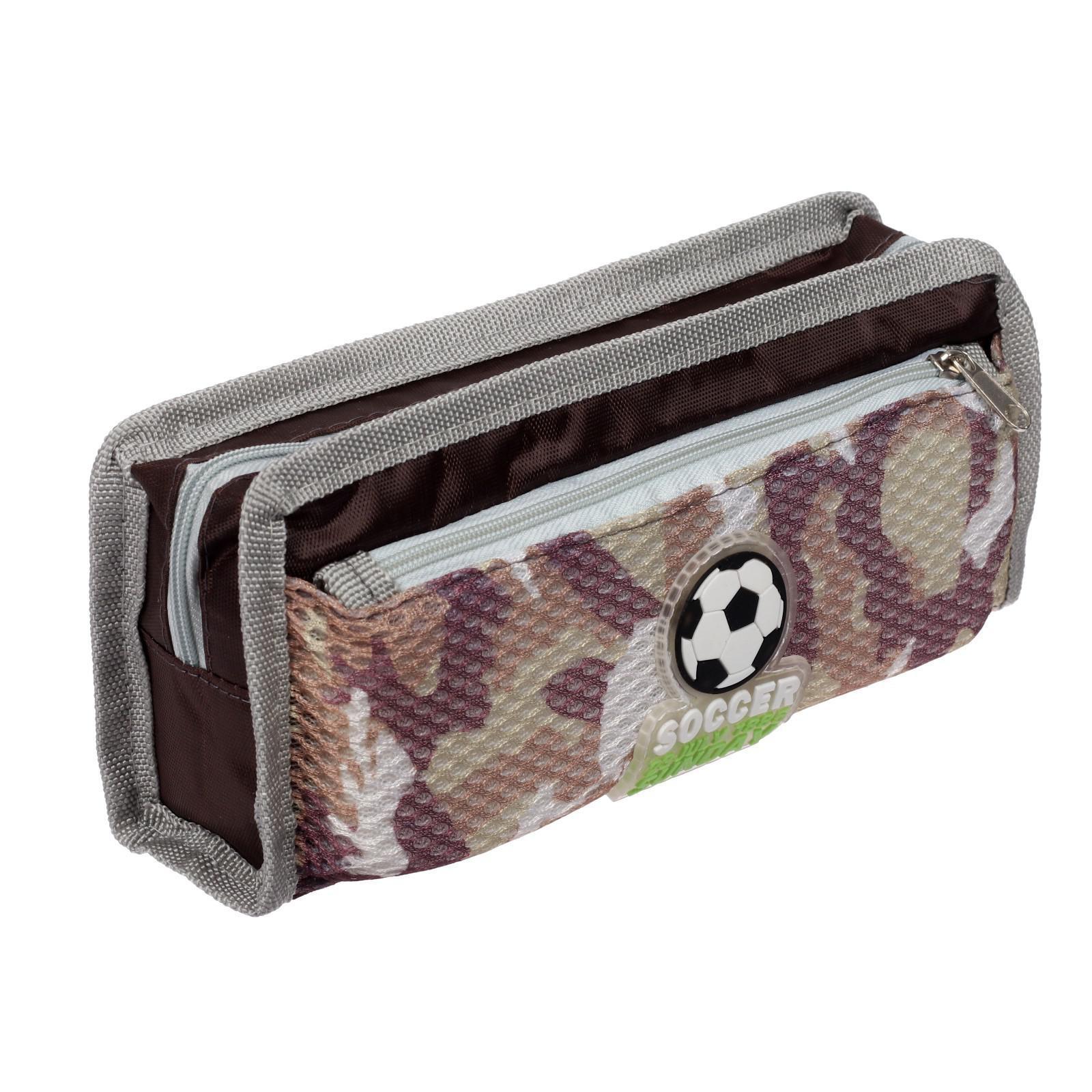 Пенал школьный на молнии 2 отделения "Футбольный мяч", милитари, МИКС 5469437