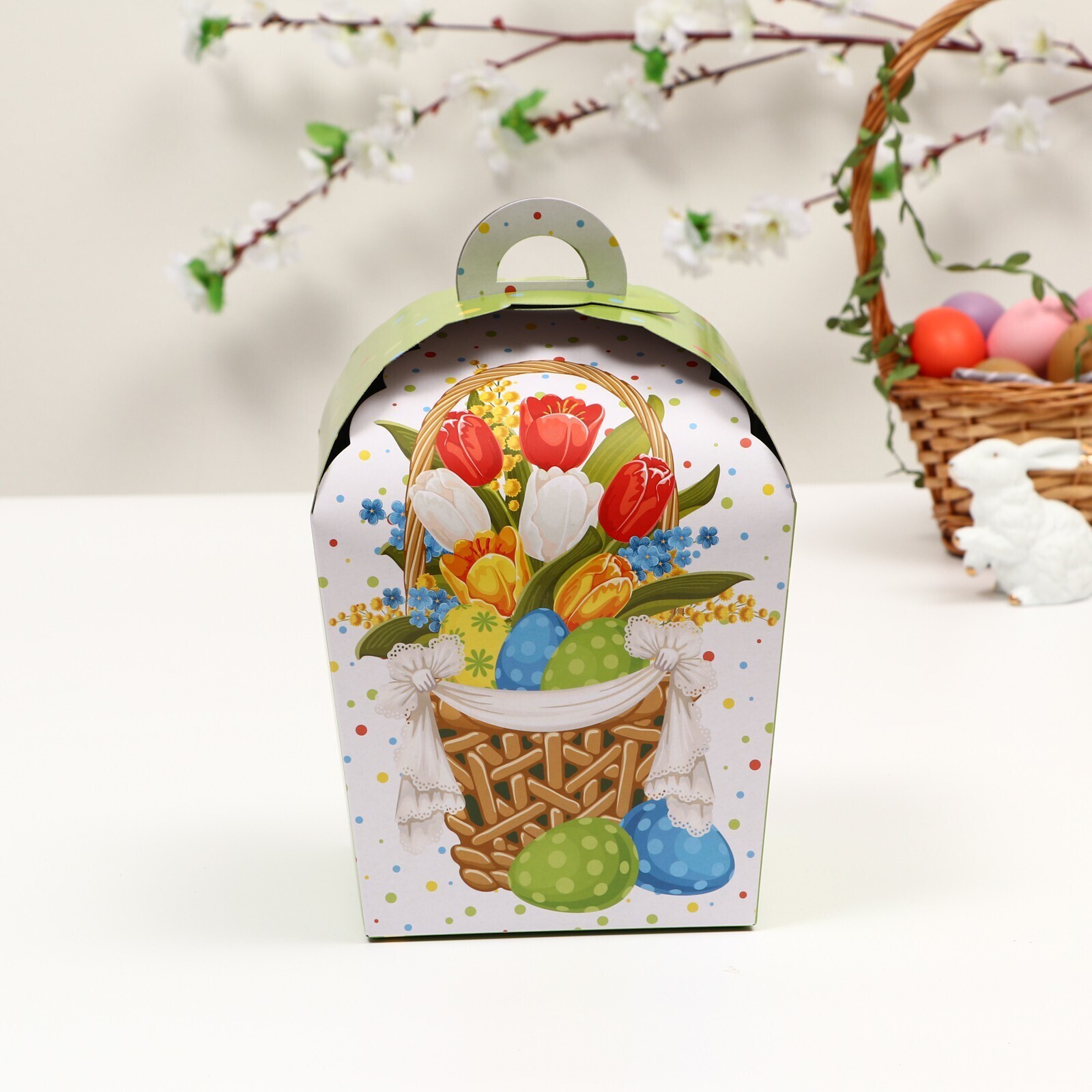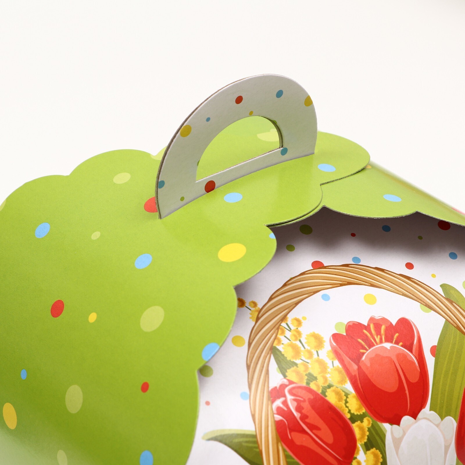 Кондитерская коробка пасхальная. Изготовлена из плотного картона. Прекрасно подойдет для различных десертов. Удобно для упаковки и транспортировки.