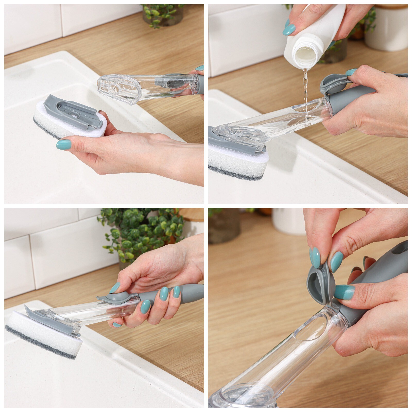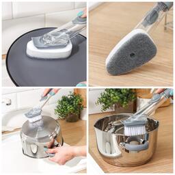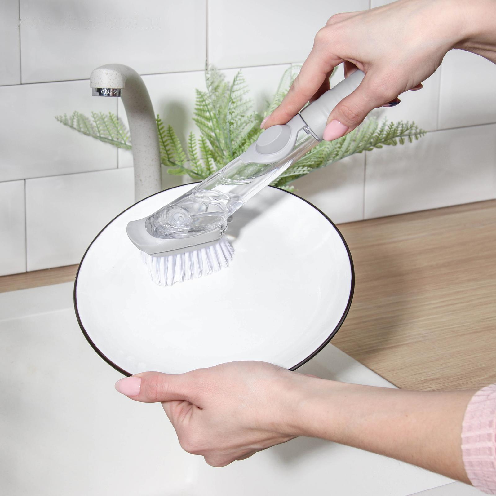 Щетка с дозатором для посуды как нельзя лучше подходит для очистки кастрюль, сковород, противней, гриля и многих других предметов.