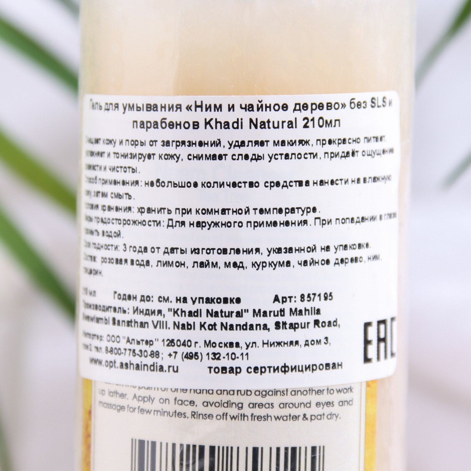 Тонизирующий гель для умывания "Khadi India", "Ним и чайное дерево", без SLS и парабенов, 210 мл 9043903