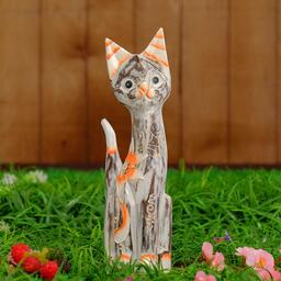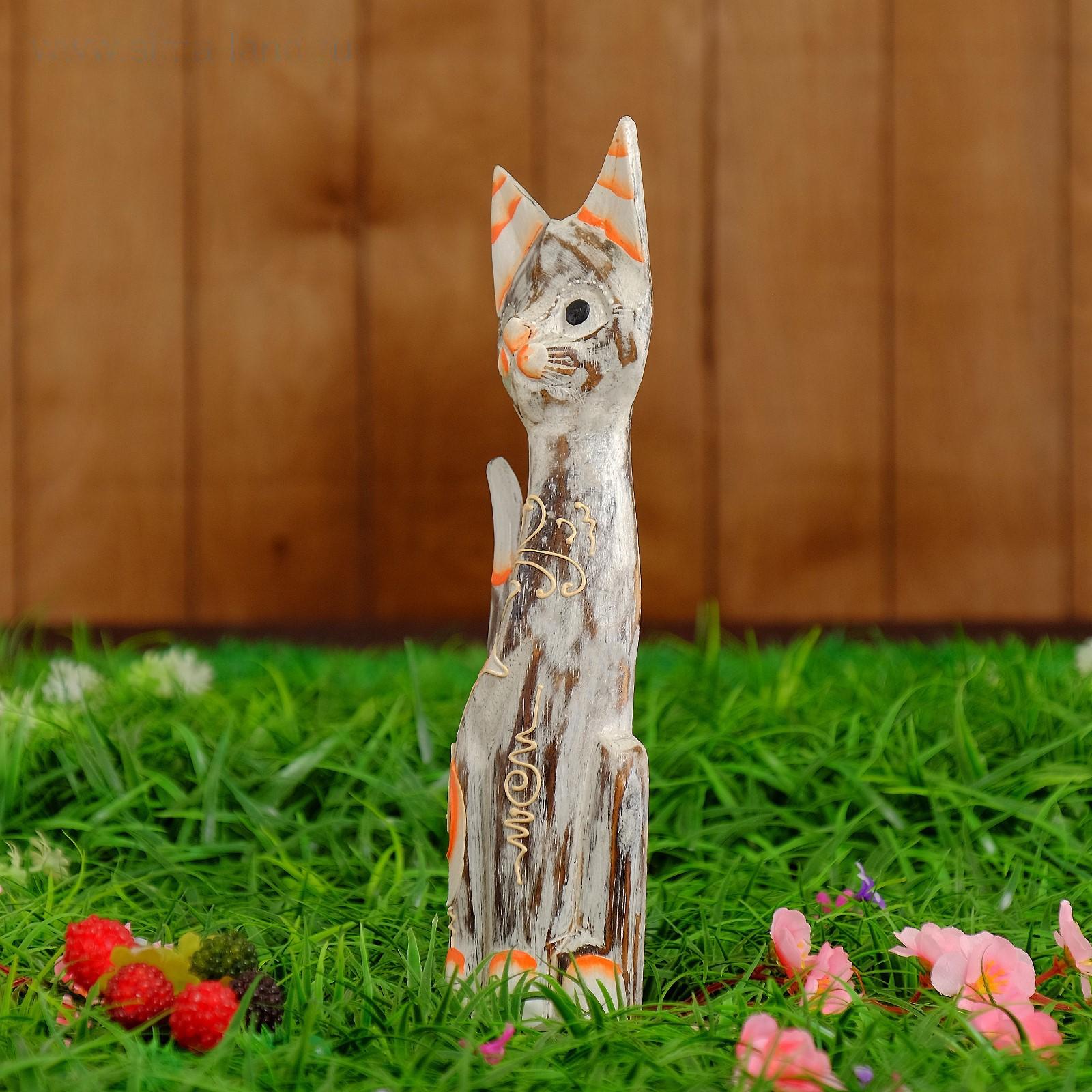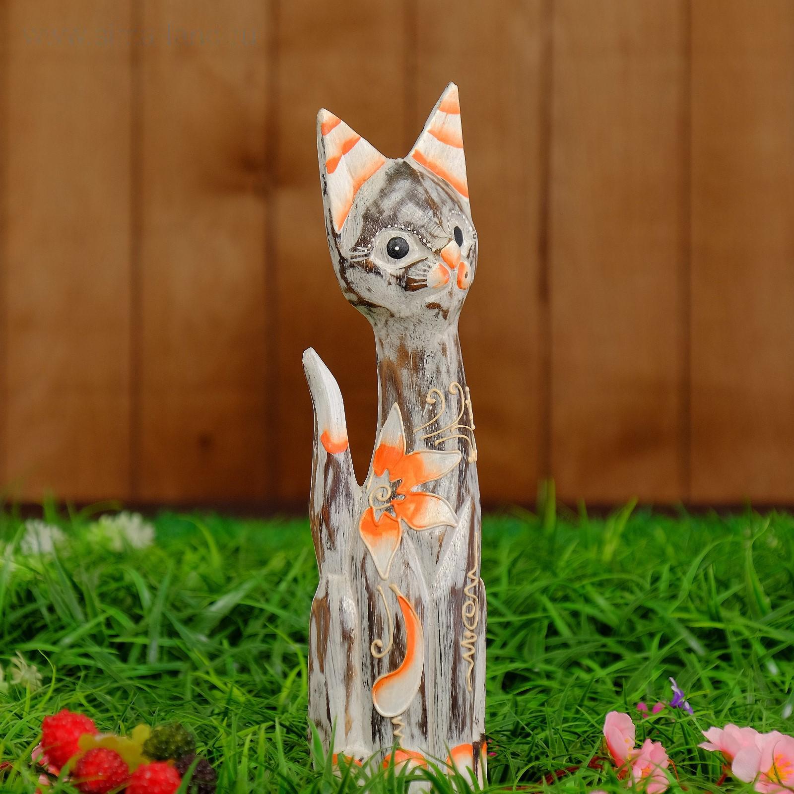 Сувенир дерево "Кошка серая с цветком" 30х10х3 см 2028063