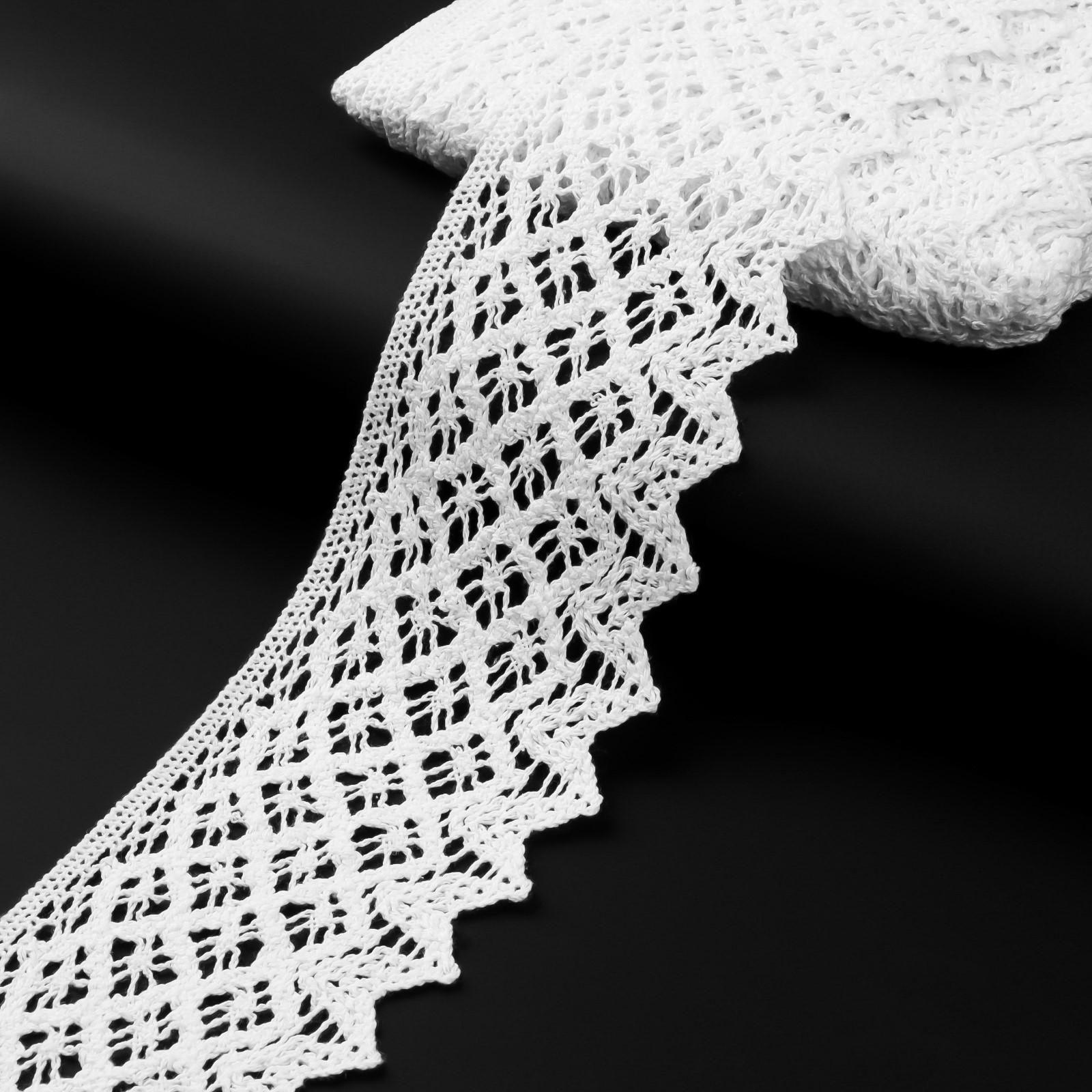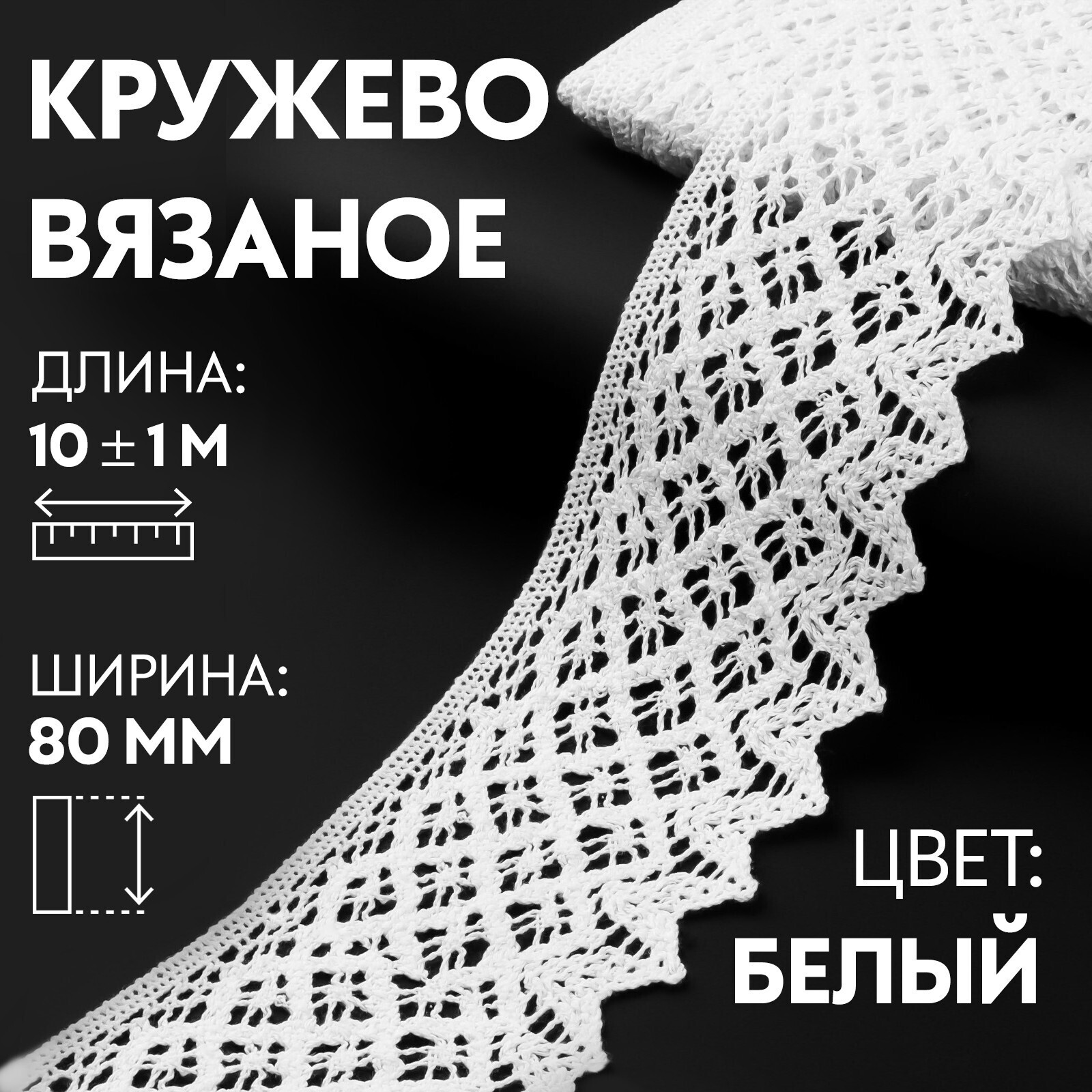Кружево вязаное, 80 мм × 10 ± 1 м, цвет белый 7127797
