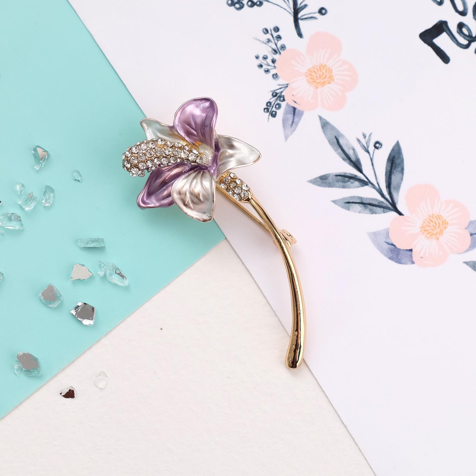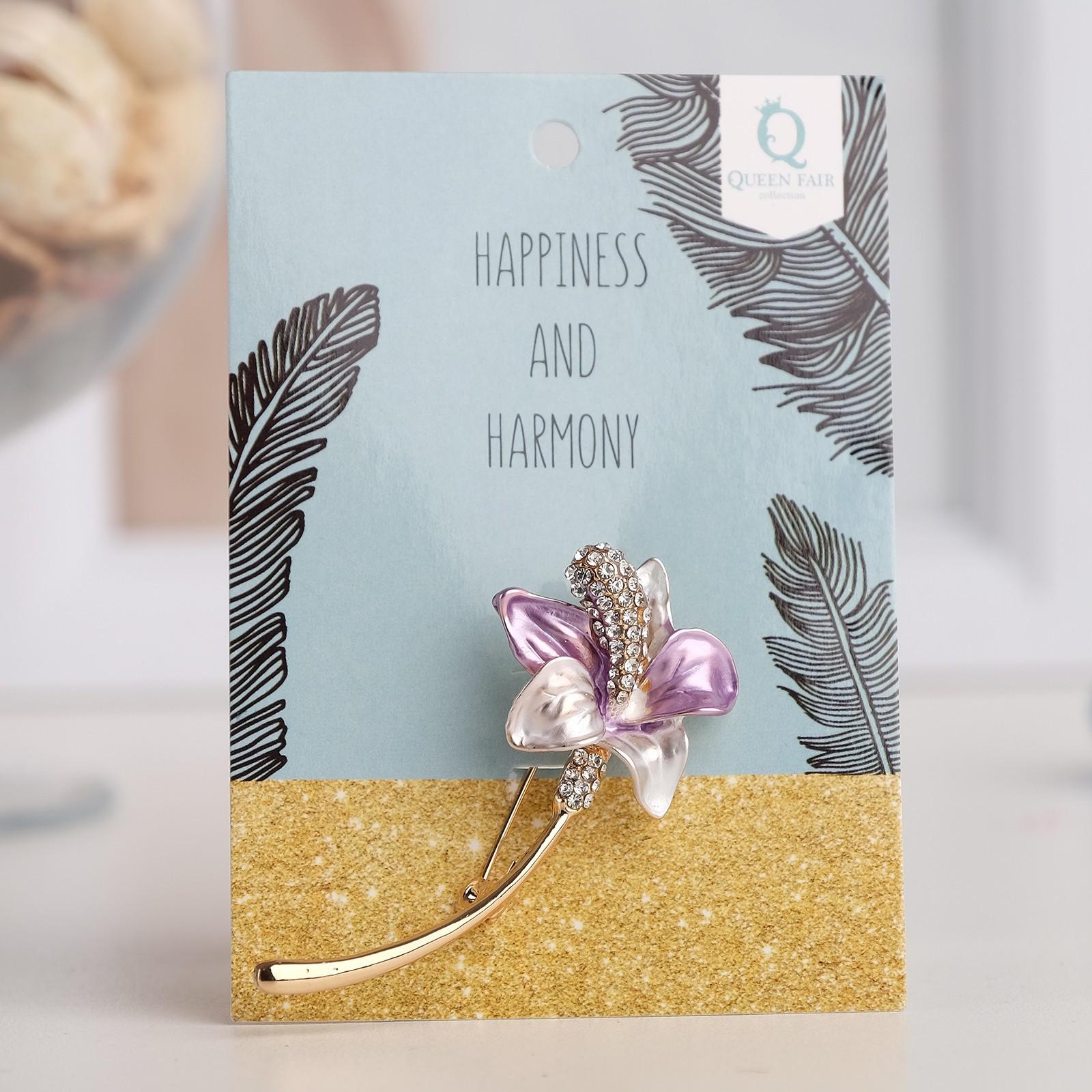 Брошь "Цветок" лилия, цвет сиренево-белый в золоте 1194059