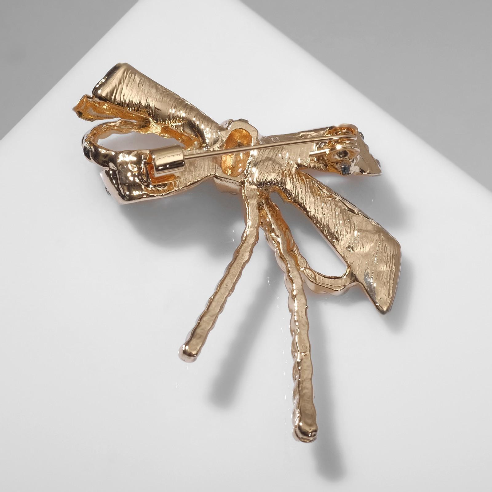 Брошь "Бантик" со шнурком, цвет белый в золоте 7811057