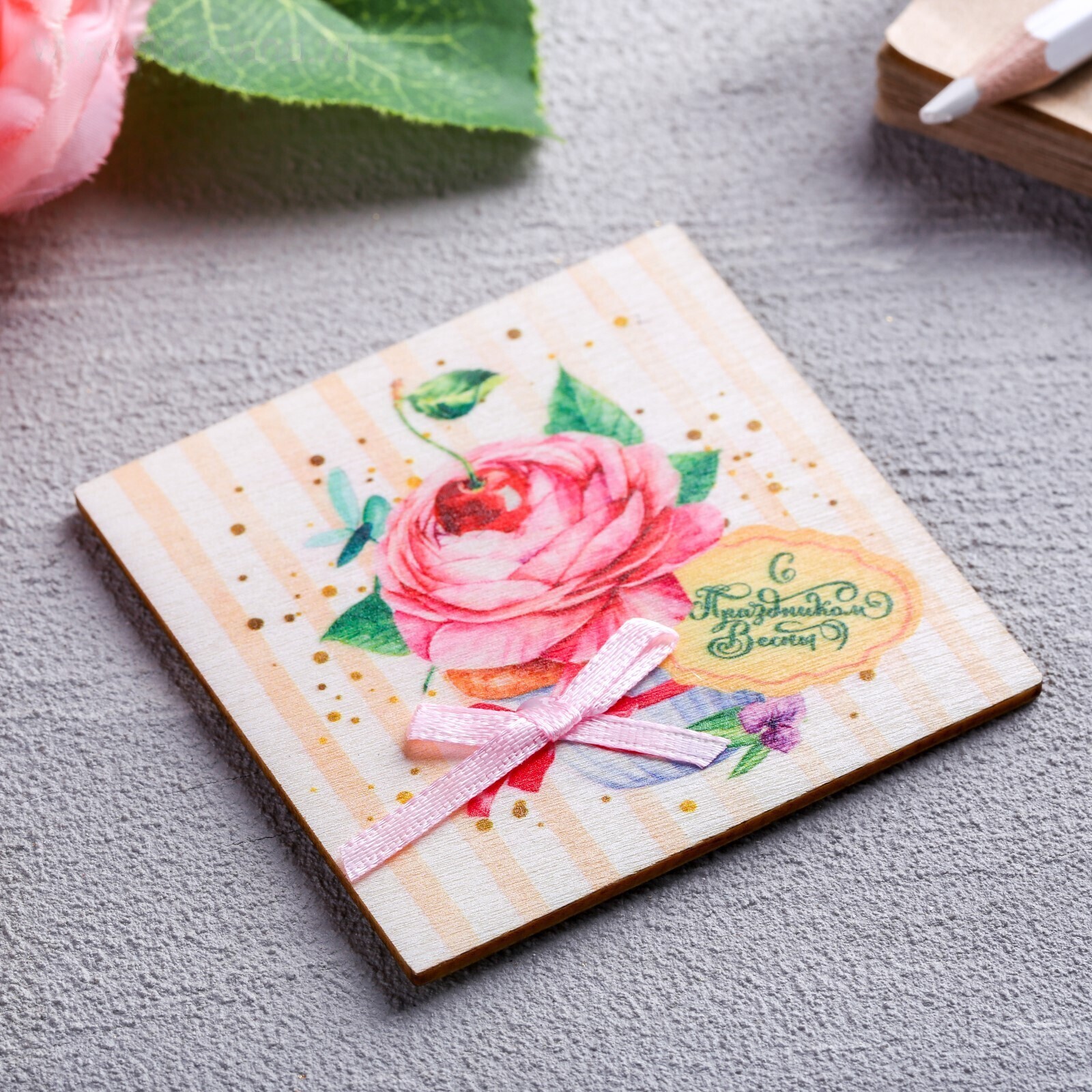 Магнит деревянный «С праздником весны», 7 х 7 см