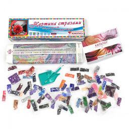 - Комплектация холст с изображением-схемой, акриловые стразы, пинцет, лоток для страз, подробная инструкция