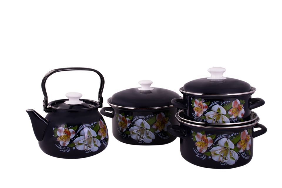 - Состав набора Состав: кастрюли цил 2,3л 3,0л 4,0л чайник 3,0л с метал ручкой