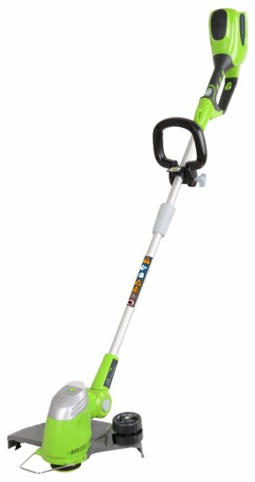 - Особенности поворотная головка; опорное колесо для вертикальной подрезки; аккумулятор и зарядное устройство в комплект не входят