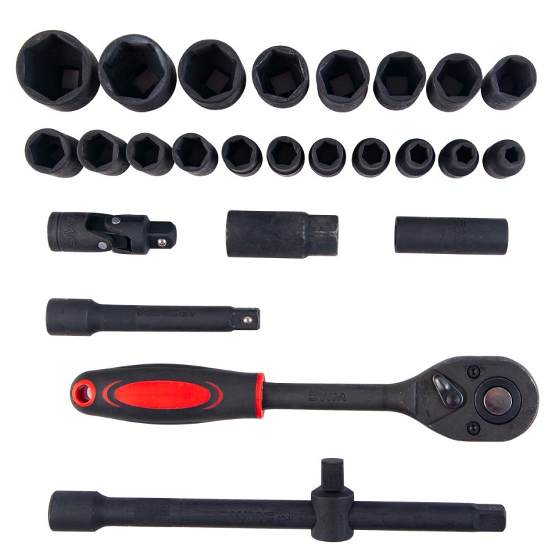 WMC-4027 Набор инструментов 1/2''27пр. (головки 8-32мм,трещотка,вороток.удлинитель,кардан,свечная головка)