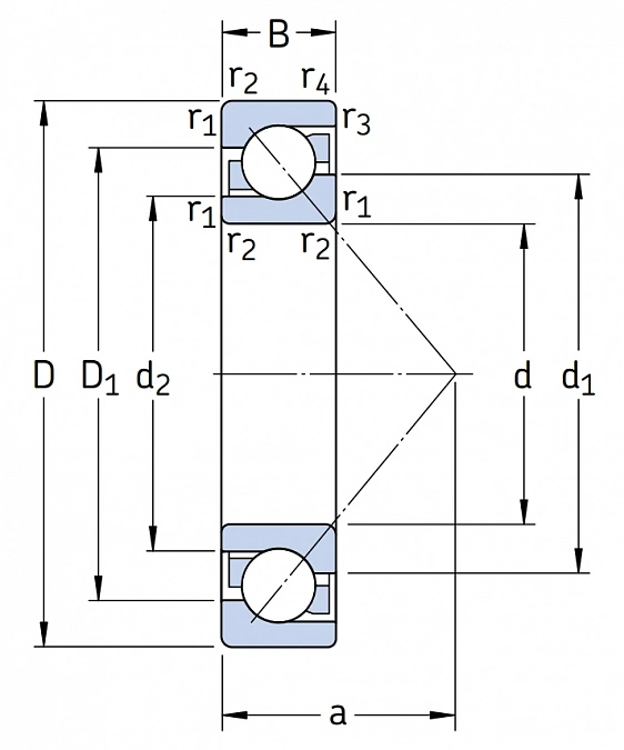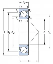 - Техническое описание M- латунный сепаратор, CB -нормальный осевой зазор для парной установки, угол контакта В= 40°