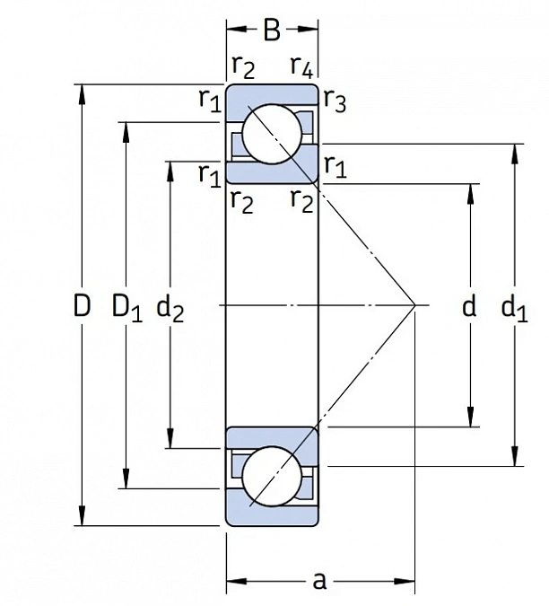 - Техническое описание GA - легкий преднатяг, для парной установки, угол контакта В = 40°, F - механически обработанный стальной сепаратор.
