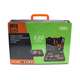 ISMA-56003 Набор инструментов 600 пр.1/4'' 3/8''(5-19мм, ключи:10-17мм,шарнирно-губцевый инстр.,отвертки,биты,молоток, ключи 6-е Г-обр.-е,расходник)