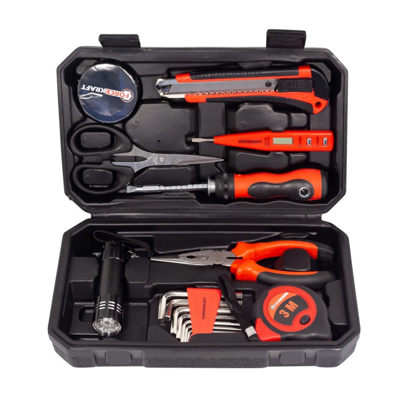 FK-1017 Набор инструментов 17пр.(шестигранники:1.5-6мм,утконосы,нож,индикатор.-я отвертка,изолента,рулетка 3м,фонарик,ножницы,отвертка реверс.-я РН2хSL6мм)