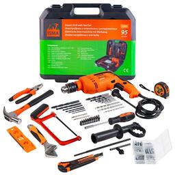 ISMA-1095 Набор инструментов с дрелью электрической,95пр.(220V,750W,0-2900об/мин),в кейсе