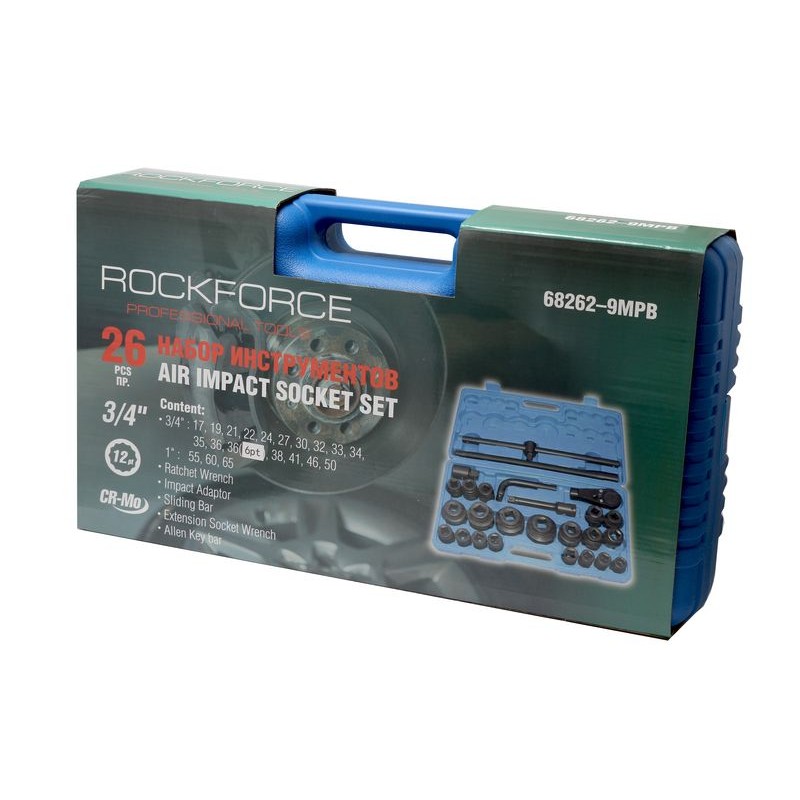 RF-68262-9MPB Набор инструментов ударных 26пр, 3/4''1''(12гр.)(17,19,22,24,27,30,32,33,34,35,36,36-6гр,38,41,46,50мм,1'':55,60,65мм)