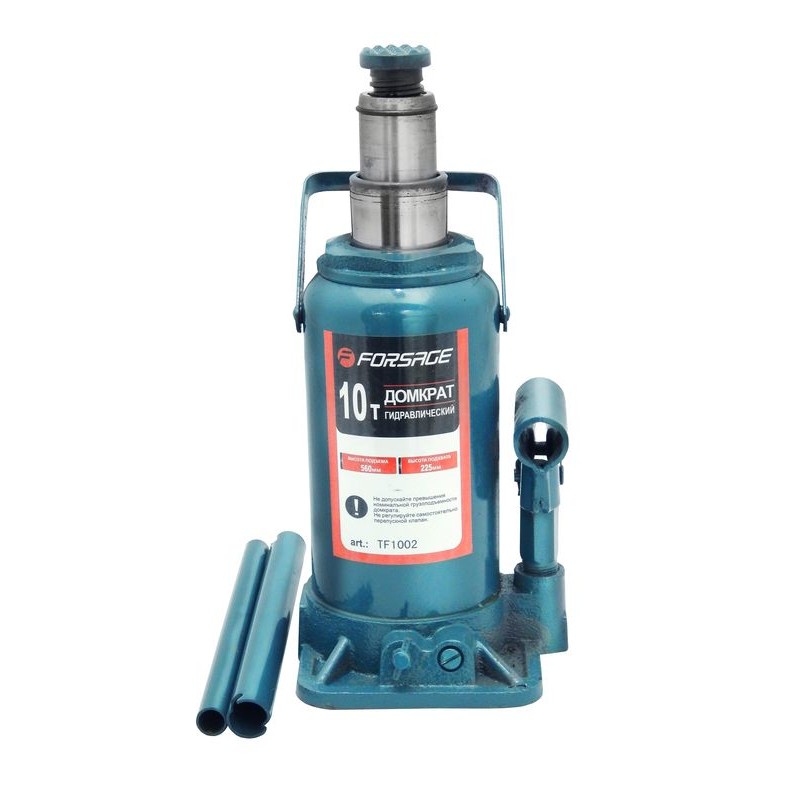 F-TF1002 Домкрат бутылочный двухштоковый 10т (h min 220мм, h max 510мм)