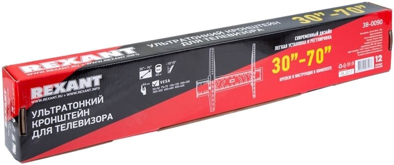 Ультратонкий наклонный кронштейн Rexant для телевизора, диагональ 30"-70"