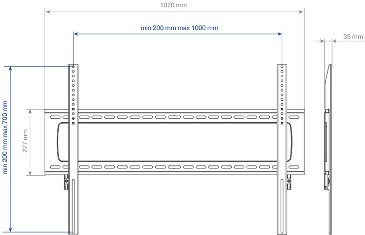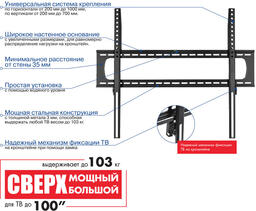 - Настенное крепление (VESA) 200x200 мм, 300x200 мм, 200x300 мм, 300x300 мм, 200x400 мм, 400x200 мм, 400x300 мм, 400x400 мм, 600x400 мм, 800x400 мм, 800x500 мм, 800x600 мм