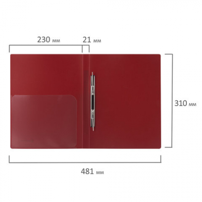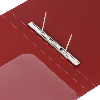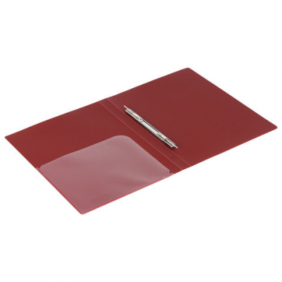 Изготовлена из высококачественного пластика темно-красного цвета толщиной 0,6 мм с оригинальной диагональной фактурой. Обеспечивает хранение до 100 листов формата А4. Металлический скоросшиватель с пружинным механизмом обеспечит надежную фиксацию документов. Кроме того, папка снабжена прозрачным внутренним карманом. Для идентификации имеется бумажный корешок. Поставляется в индивидуальной упаковке.