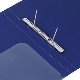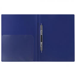 Изготовлена из высококачественного пластика темно-синего цвета толщиной 0,6 мм с оригинальной диагональной фактурой. Обеспечивает хранение до 100 листов формата А4. Металлический скоросшиватель с пружинным механизмом обеспечит надежную фиксацию документов. Кроме того, папка снабжена прозрачным внутренним карманом. Для идентификации имеется бумажный корешок. Поставляется в индивидуальной упаковке.