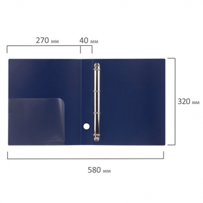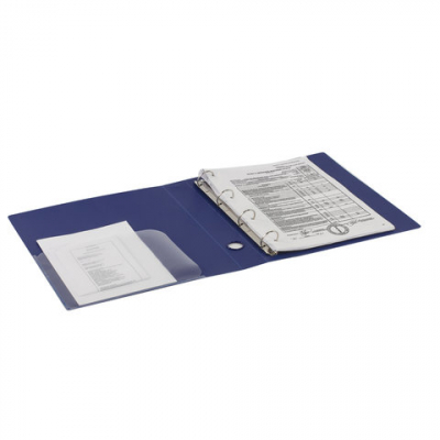 Папка на 4 кольцах BRAUBERG "Диагональ", 40 мм, темно-синяя, до 300 листов, 0,9 мм, 221350