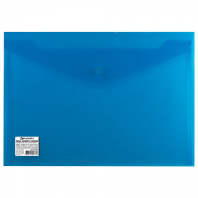 Папка-конверт с кнопкой BRAUBERG, А4, до 100 листов, непрозрачная, синяя, СВЕРХПРОЧНАЯ 0,2 мм, 221362