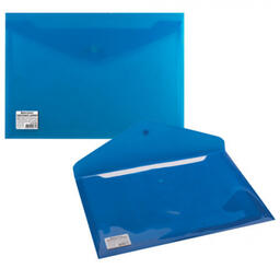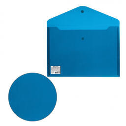 Папка-конверт с гладкой фактурой формата А4 изготовлена из плотного пластика синего цвета толщиной 200 мкм. Закрывается на защелку-кнопку, что делает удобным частое использование и обеспечивает быстрый доступ к ее содержимому. Папка способна вместить до 100 листов стандартной плотности.
