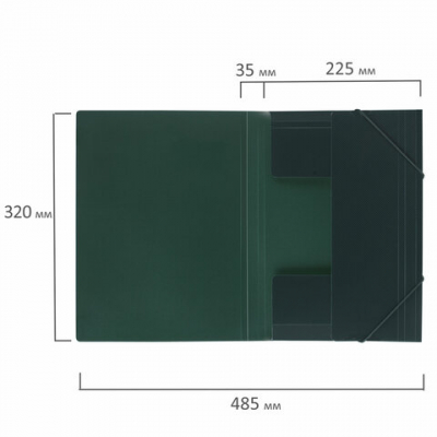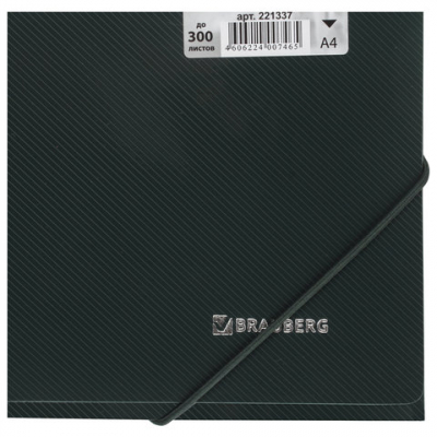 Папка на резинках BRAUBERG, диагональ, темно-зеленая, до 300 листов, 0,5 мм, 221337 SAM_221337