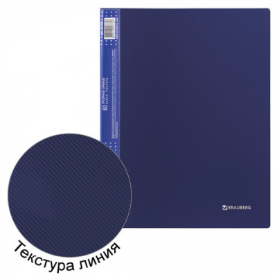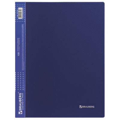 Папка 100 вкладышей BRAUBERG диагональ, темно-синяя, 0,9 мм, 221333