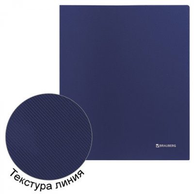 Папка на 2 кольцах BRAUBERG "Диагональ", 40 мм, темно-синяя, до 300 листов, 0,9 мм, 221348