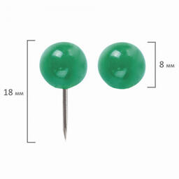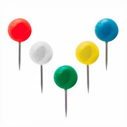 Кнопки с цветной круглой пластиковой шляпкой диаметром 9 мм и стальным острием длиной 10 мм. 50 штук в картонной коробке.