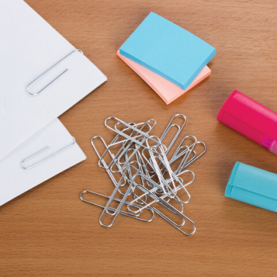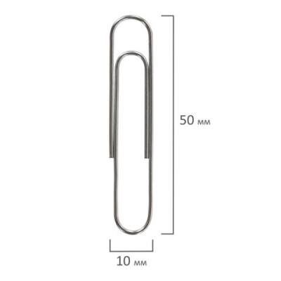 Большие скрепки изготовлены из стали, имеют классическую овальную форму и блестящее никелевое покрытие. Длина скрепки составляет 50 мм. Не окисляются и не повреждают документы. 50 штук в картонной коробке.