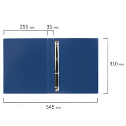 Папка на 4 кольцах BRAUBERG, картон/ПВХ, 35 мм, синяя, до 250 листов (удвоенный срок службы), 221484