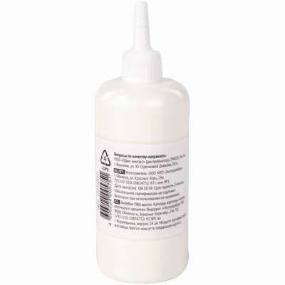 Имеет увеличенный объем 150 мл. Флакон оснащен пластиковым дозатором, который позволяет равномерно и точно наносить клей на поверхность. Нетоксичен, морозоустойчивый. Быстрое склеивание достигается за счет нанесения тонкого слоя клея. Экономичное расходование. Съемный колпачок предохраняет клей от засыхания. Необходимо взболтать перед применением.