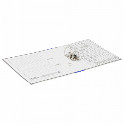 Папка формата А4 с вертикальной ориентацией изготовлена из высококачественного износоустойчивого картона с покрытием под "мрамор". Ширина корешка в 50 мм позволяет разместить до 350 листов. Нижние края папки защищены металлическими уголками, что увеличивает срок службы в 2 раза. Прорези для колец на внешней крышке позволяют оставаться папке закрытой даже при большом количестве бумаг, а надежный арочный механизм легко справляется с ежедневными нагрузками. Синий корешок снабжен этикеткой для маркировки содержимого, что позволяет структурировать информацию.