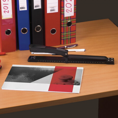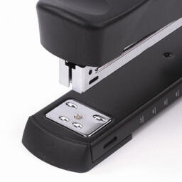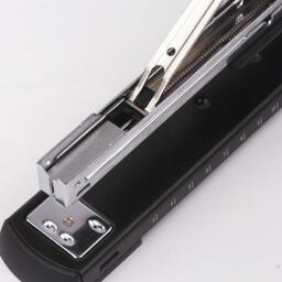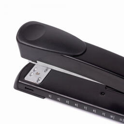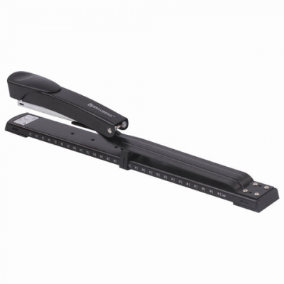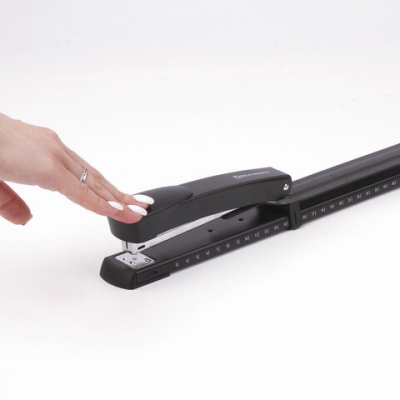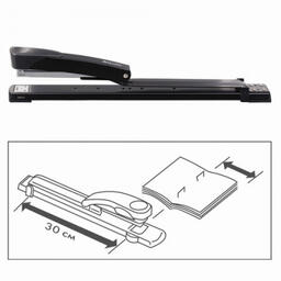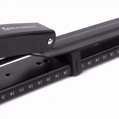 Металлический механизм позволяет сшивать открытым и закрытым способами документы объемом до 25 листов и регулировать глубину закладки бумаги до 30 см. Вмещает 100 скоб № 24/6. Регулятор расстояния сшивания имеет двойную градацию шкалы (сантиметр, дюйм). Корпус выполнен из металла и пластика.