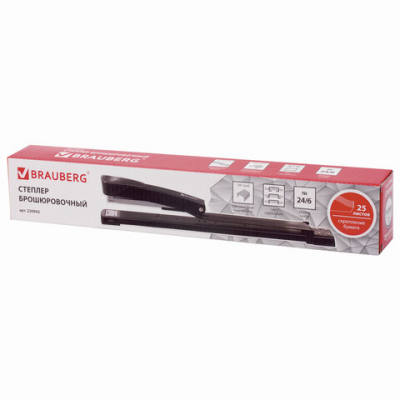 Степлер №24/6, 26/6 BRAUBERG "Universal", до 25 листов, С ФУНКЦИЕЙ БРОШЮРОВАНИЯ, черный, 220942