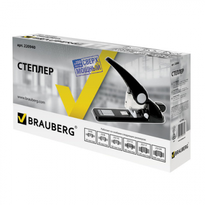 Степлер МОЩНЫЙ №24/6-23/24 BRAUBERG "Heavy duty GT", до 200 листов, черный, 220940