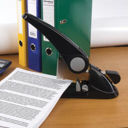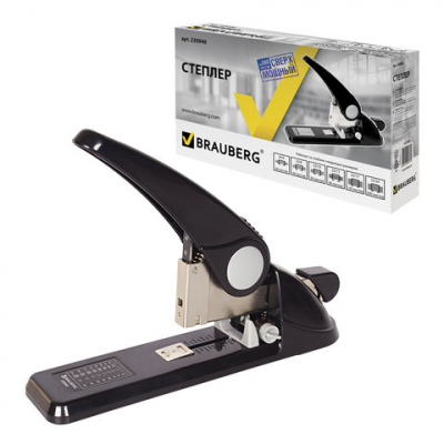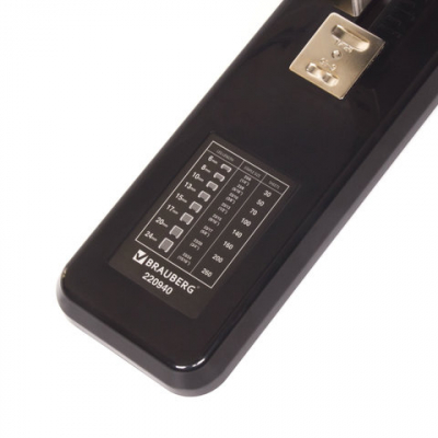 Рабочий механизм выполнен из металла, корпус - из пластика черного цвета. Способен скрепить до 200 листов бумаги. Подходит для скоб № 24/6, 26/6, № 23/15, № 23/17, № 23/20, № 23/8, 24/8, № 23/23, № 23/10, № 23/24, № 23/13. Глубина закладки бумаги регулируется - до 61 мм. Закрытый вид сшивания. Фронтальная загрузка скоб. Оснащен устройством для удаления испорченных скоб.