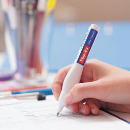 - Корректирующая ручка оснащена клапанным механизмом, и подача жидкости осуществляется с помощью нажатия на наконечник ручки.