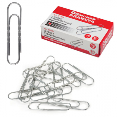Скрепки большие 50 мм, ОФИСНАЯ ПЛАНЕТА, оцинкованные, гофрированные, 50 шт., РОССИЯ, 221133
