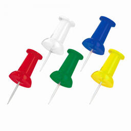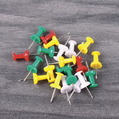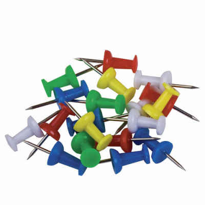 Кнопки с цветной пластиковой шляпкой диаметром 8 мм и стальным острием длиной 10 мм. 50 штук в пластиковой коробке с европодвесом.