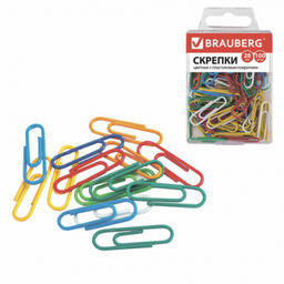 Скрепки BRAUBERG, 28 мм, цветные, 100 шт., в пластиковой коробке, 221111