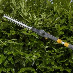 Длинное ножевое полотно покрывает внушительную площадь при стрижке кустарников и ускоряет выполнение поставленной задачи. Острые лезвия аккуратно срезают ветвистые ответвления, впоследствии ткани срастаются без вреда для всего растения.