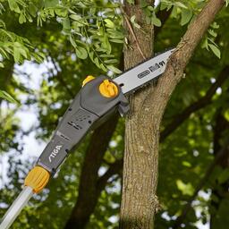 Длина агрегата в разложенном состоянии ориентирована на прореживание густых скоплений веточек на высоких деревьях без применения лестниц-стремянок и других вспомогательных приспособлений.