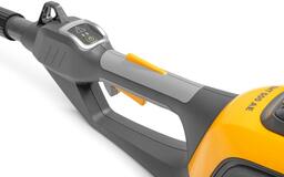 Аккумуляторный инструмент экологичен и портативен, благодаря чему востребован среди садоводов, обслуживающих приусадебные участки, парки и территории с ландшафтным оформлением. На одном заряде АКБ устройство может функционировать в течение 15 или 40 минут в зависимости от установленной гарнитуры.