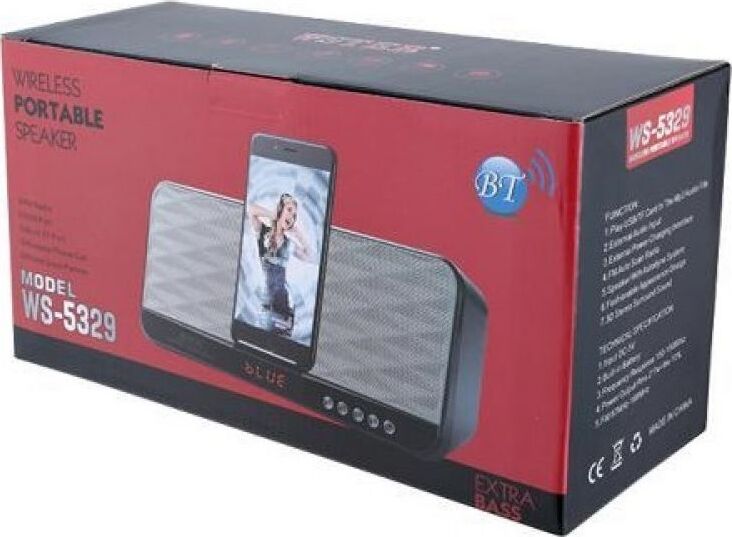 - Комплектация - Колонка Wster WS-5329. - Кабель для зарядки. - Аудио кабель AUX. - Упаковка, инструкция (англ.).